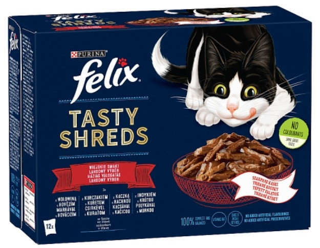 Pulykával: hús és állati származékok* (18%, melyből pulyka 4%), növényi fehérjekivonatok, hal és halszármazékok, ásványi anyagok, olajok és zsírok, növényi eredetű származékok, különféle cukrok (*a falatokban: 54% hús és állati származék)